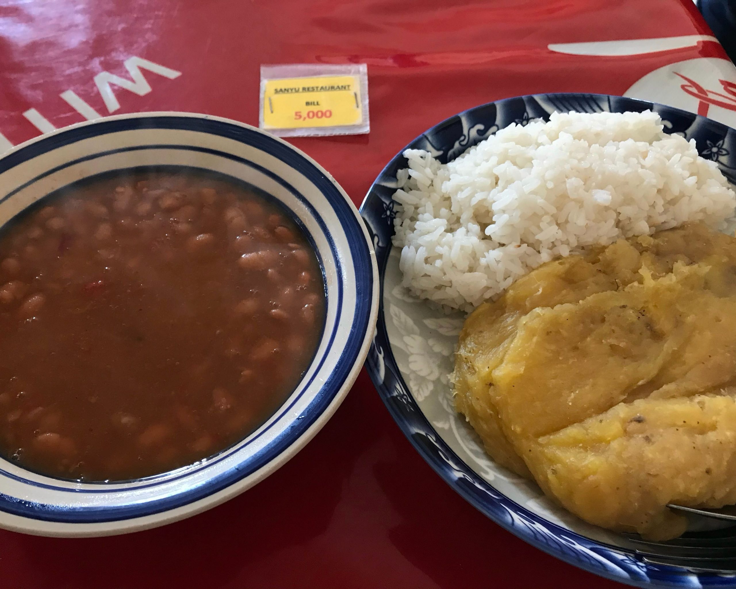 アフリカにおいて、原因のひとつとして考えられるのは、まずは食習慣です。筆者が住んでいるウガンダでもよく見られる日常ですが、ウガンダ人が家やローカルレストランで食べる食事では、主食3種類に豆や肉のスープといったメニューが多く見られます。野菜は全く入っていないか、トマトペーストとして入っているだけ、ということも。現地の学校には日本の家庭科のような授業がないそうで、トレーニングやスポーツをしている人でなければ栄養に関する基礎的な知識もない、というのが現状だと言います。