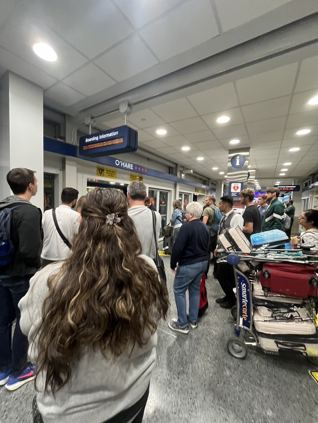 しかし、やっとの思いでとれたのは直行便ではなくシカゴ経由の便でした。乗り継ぎ時間がたった2時間!両親やシカゴに住む友人からも「間に合わないよ!」と言われ、不安な気持ちでいっぱいでした。そこでCAさん5名に聞いてみたら、「全然間に合います! 1時間30分の移動想定なので、むしろ余裕!」との答え。ベテランっぽい方の一言を信じ、私は楽観的になっていました……。