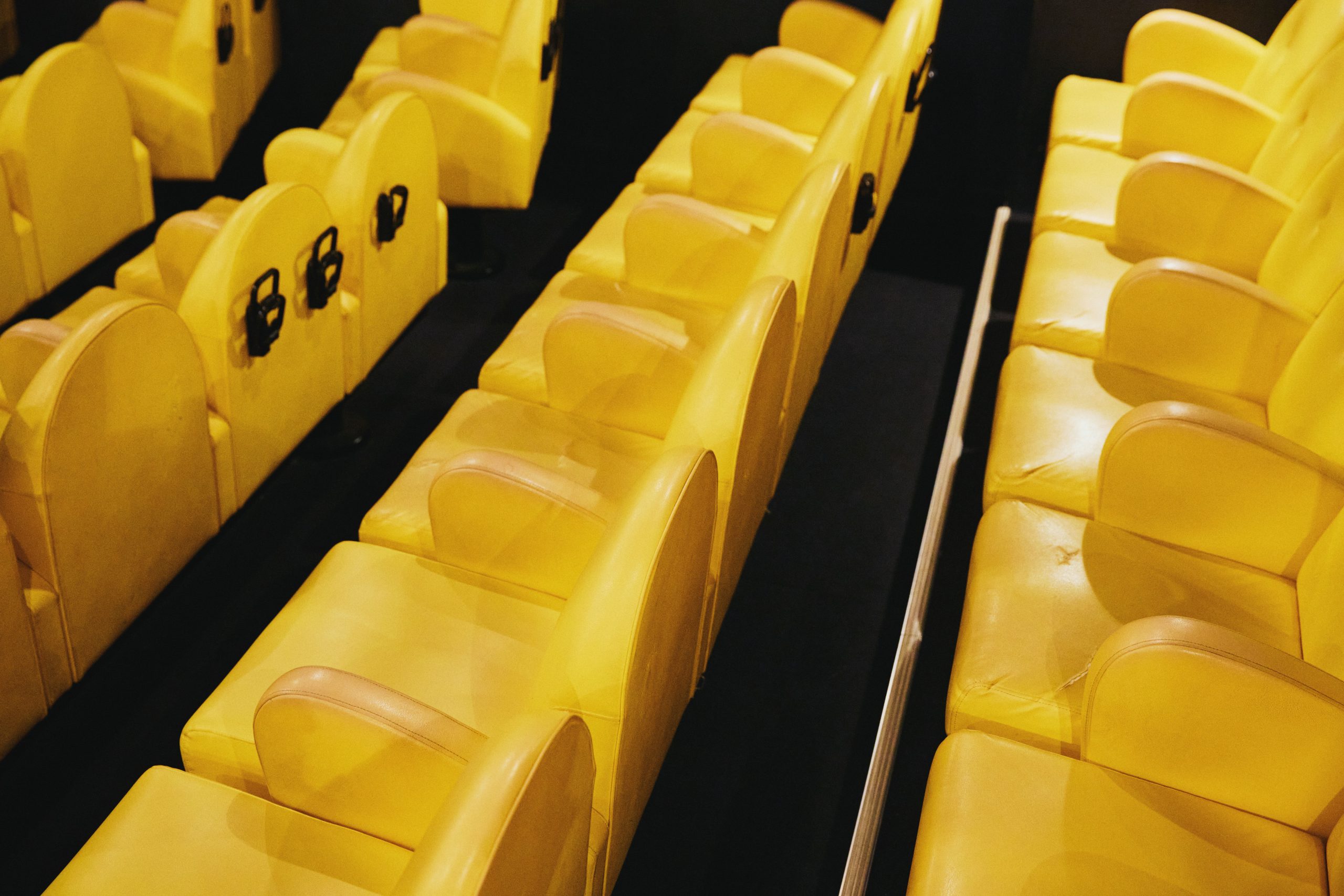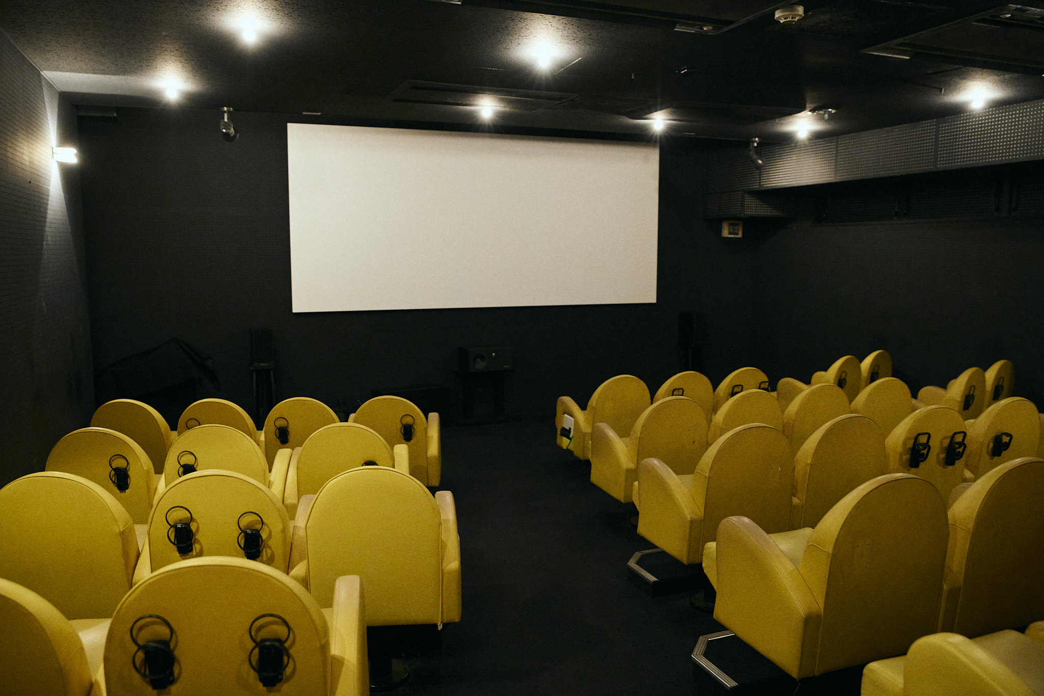 いざ、劇場の中へ。座席数は全45席。こぢんまりした空間で、なんとも特徴的なのが、ころんとしたフォルムの黄色い座席。これには「どんな作品を見たあとでも、黄色の椅子が目に入れば、少し前向きな気持ちで劇場をでれるんじゃないか」というオーナーの想いがこもっています。