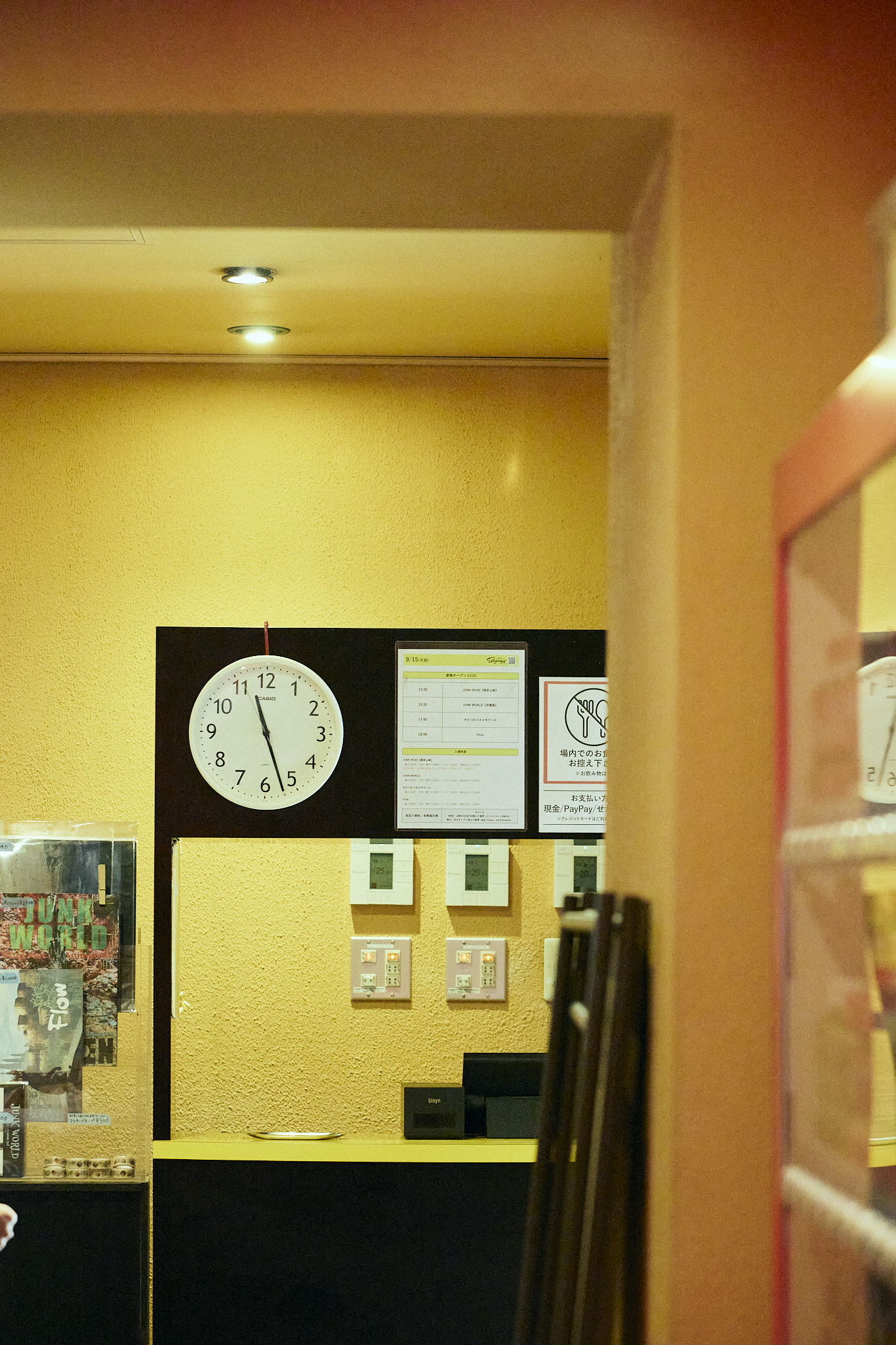 オープン当時は、この黄色ももっと鮮やかだったのかなあ、なんて想像しながら、座席の温かい使用感を眺める。これこそ、街の変化によって周囲の店や人が次々と変わっていくなかでも、トリウッドには、変わらず何か面白いものを探している人たちが足を運んでいる証。