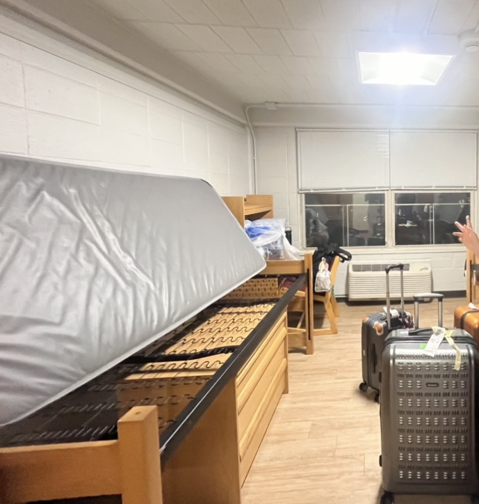 諦めかけたその時、たまたま目の前に寮の警備員さんの電話が書いてあるポスターを見つけ、すぐに電話をかけました。やっと寮の鍵を開けてもらい、大学から支給される布団セット(枕や毛布など)を受け取ることができました。安心したのもつかの間、なんと3階まで重い荷物を自力で持ち上げる過酷な試練が待ち受けていたのです。アメリカに持ち込みが許可が降りているのは、23kgのスーツケース2つと機内持ち込みを含めた手荷物2つ。合計約60kgを超える荷物は想像より重く、エレベーターがない建物には笑うしかありません。