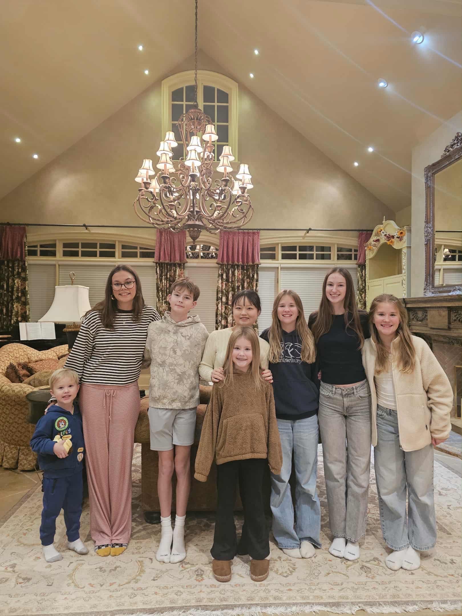 ホストファミリー姉弟といとこ(一部)のみんなで撮った集合写真 背も抜かれてしまいました笑