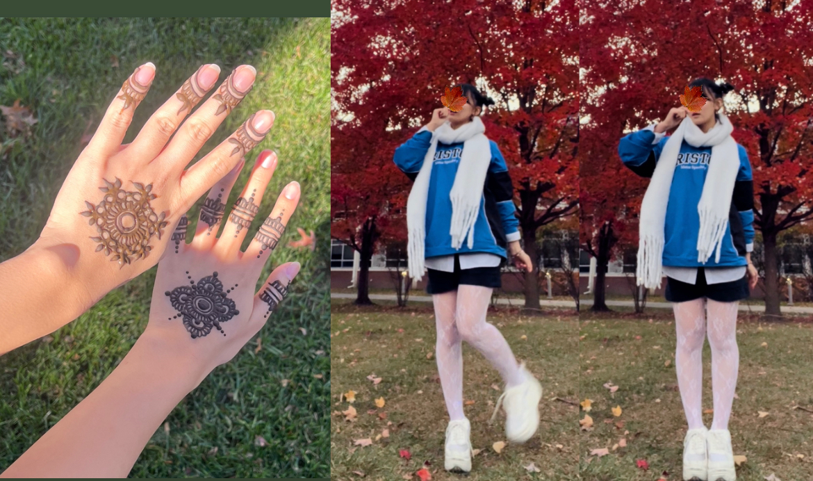大学生活でも、インドの友人から人生初のヘナタトゥーをペイントしてもらったり、ピアノがある防音室で歌ってピアノを弾いたり。おしゃれをしてキャンパス内の紅葉の木の前で写真を撮ったり、夜中に共同ラウンジでみんなでラーメンを食べながらお話ししたり。人生初のアフレコと映画のサウンドを作るために、外で録音しに行ったり。そんな楽しい日々もストレス発散になっています。