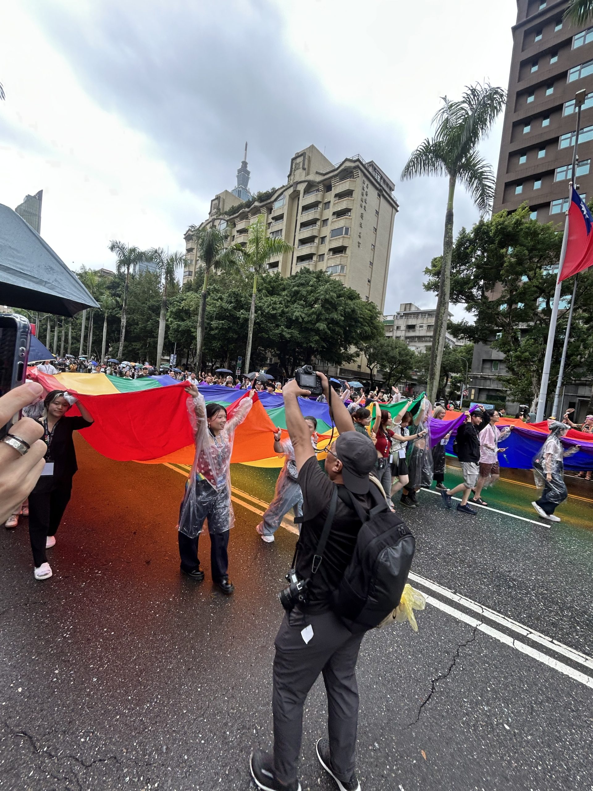 そして、トランスマーチの次の日は、プライドパレード(臺灣同志遊行)! LGBTQ+平等を支持する人々のパレードです。今回がわたしにとって初めてのプライドパレードだったのですが、台湾のプライドパレードは東アジア最大級で、今年はは約15万人が参加したそうです。たしかに、プライドパレードの数日前から街全体が賑わい始めている空気を感じました。