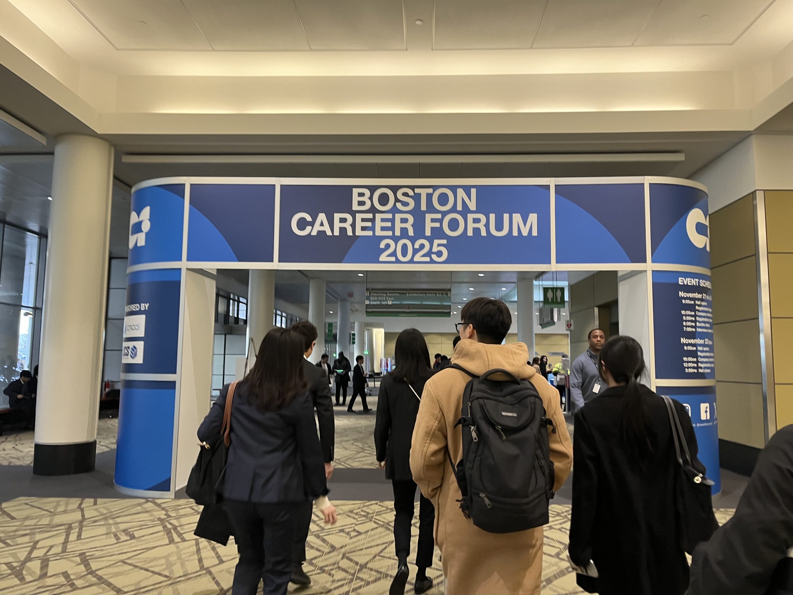 ボストン空港についてからは、緊張した空気を感じて、日本人やスーツを着た人を見かけるたびに、どこで誰に見られているか分からない焦りを感じました。このイベントに参加するために、多くの日本人留学生や、海外経験を持つ日本の大学に通う学生が集合します。ボストン空港や滞在したホテルでは、沢山の日本人に囲まれていたので、ついつい自分がアメリカにいることを忘れてしまうほどでした(笑)。日本であればホテルに日本人しかいないことは普通の光景なはずなのですが、いざアメリカでその状況になると、この中で一体誰が同じ会社に興味を持っているんだろう…と少しドキドキして気が休まりませんでした‼︎