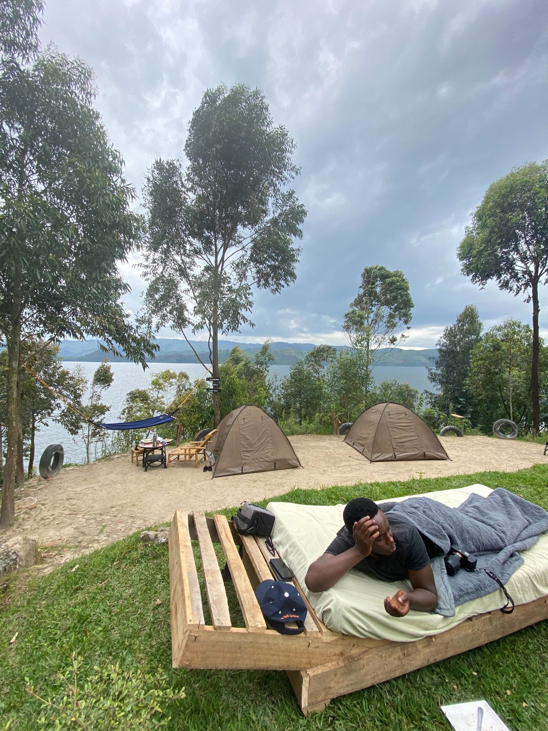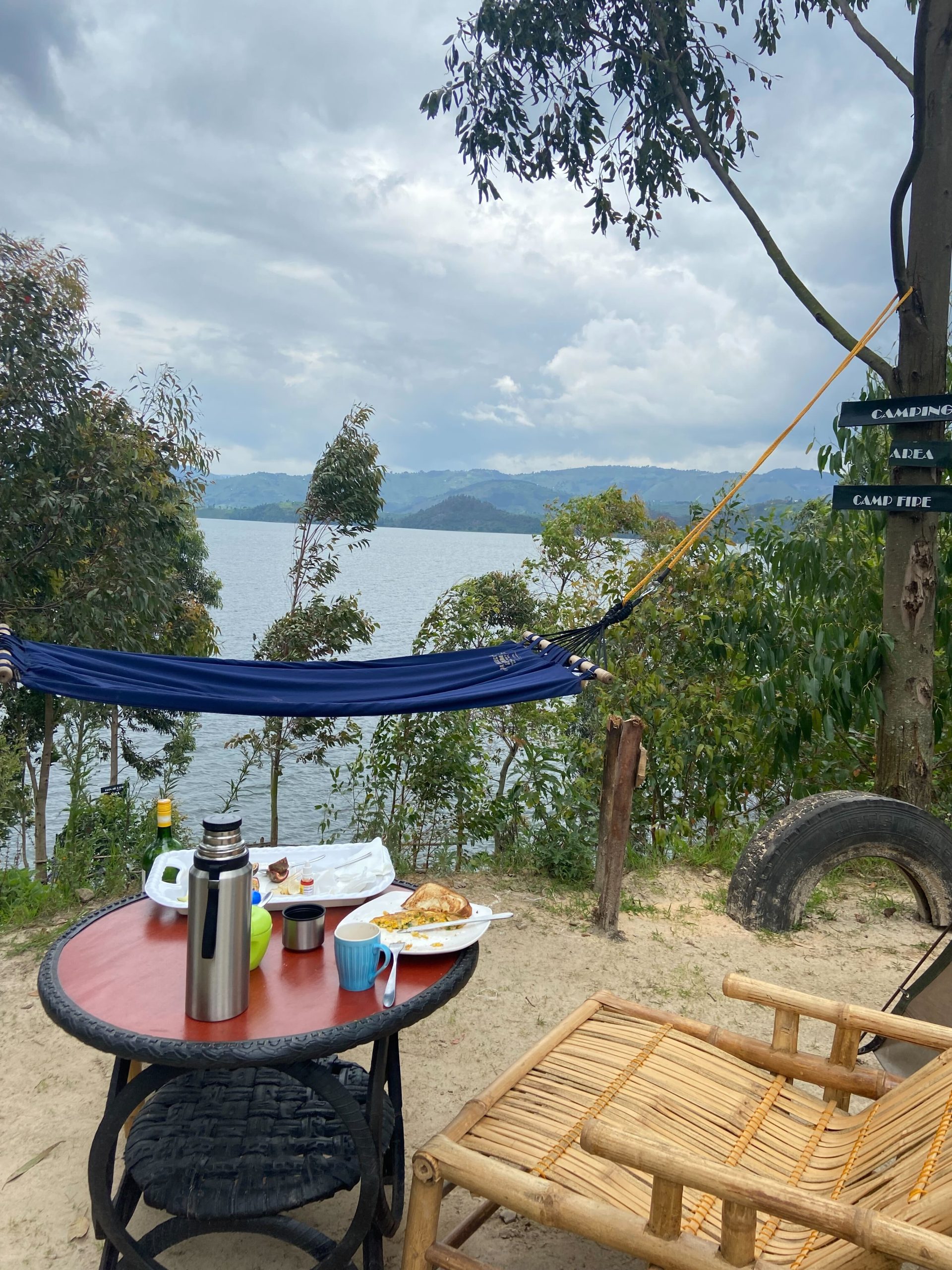船で20分ほど漕いだ場所にあり、5分で島全体を歩き回れるほど小さな面積の島でした。島には家と小さな小学校と教会があるだけで、経済は栄えていません。そこで、ルワンダ人が島の一部を買い取ってキャンプができるように観光業を始めたらしい。360度、湖の景色に囲まれて過ごしたキャンプ生活とキャンプファイヤーは一生に残る思い出になりました。