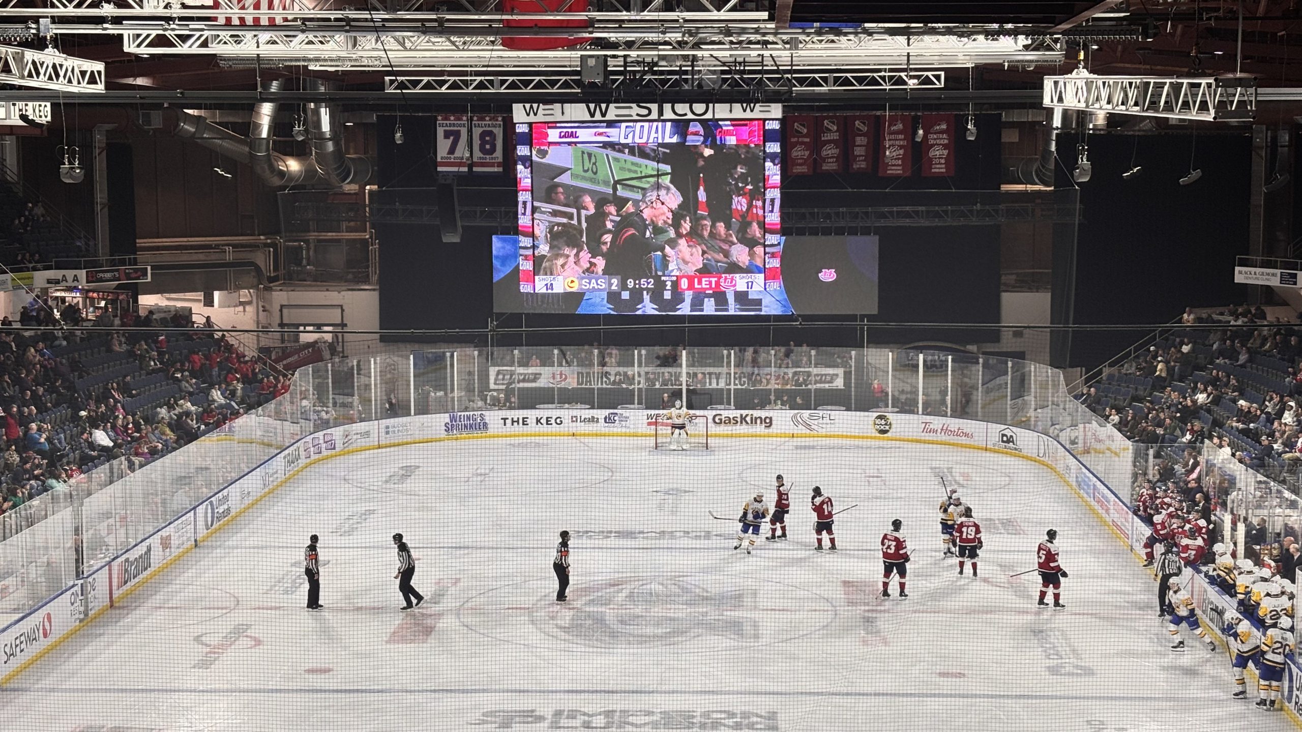 もうひとつ驚いたことは会場での演出がとても豪華なことです。普通、試合は選手の入場から始まりますが、カナダのアイスホッケーは違います! 選手入場の前にレフェリーの入場から始まるんです。大音量の音楽と、カラフルな照明の元、華麗なスケーティングで入場、レフェリーが少しパフォーマンスをして、その後ようやく選手が入ってきます。