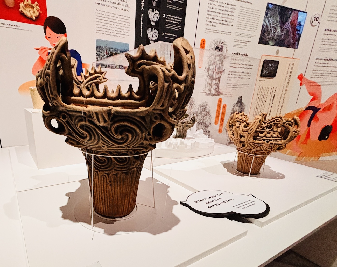 「火焔型土器」は、はるか昔から私たちの身近に「ぐるぐる」があったことを伝えています。こちらは複製のため、触ることができる展示になっていました。ぜひ、触れて「ぐるぐる」をつけたくなる気持ちを感じてくださいね。
